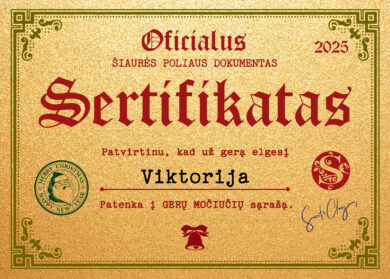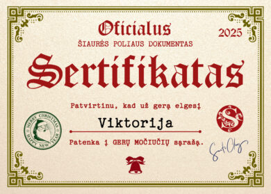 Kiekvienas vaikas gaus po sertifikatą su savo vardu.